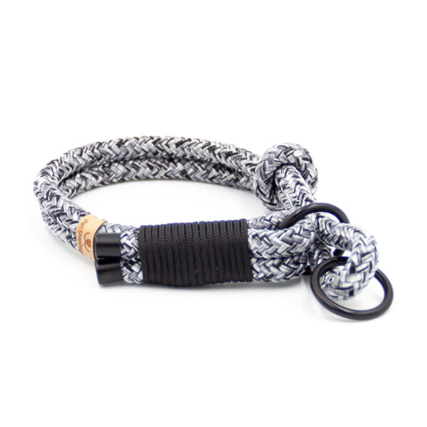 Smycz przepinana daje możliwość regulacji jej długości. Pierwsze oczko pozwala na zrobienie rączki i daje najdłuższą opcję smyczy. Jeśli chcesz, by pies był bliżej Ciebie, wystarczy przepiąć karabinek na oczka bliżej psa.